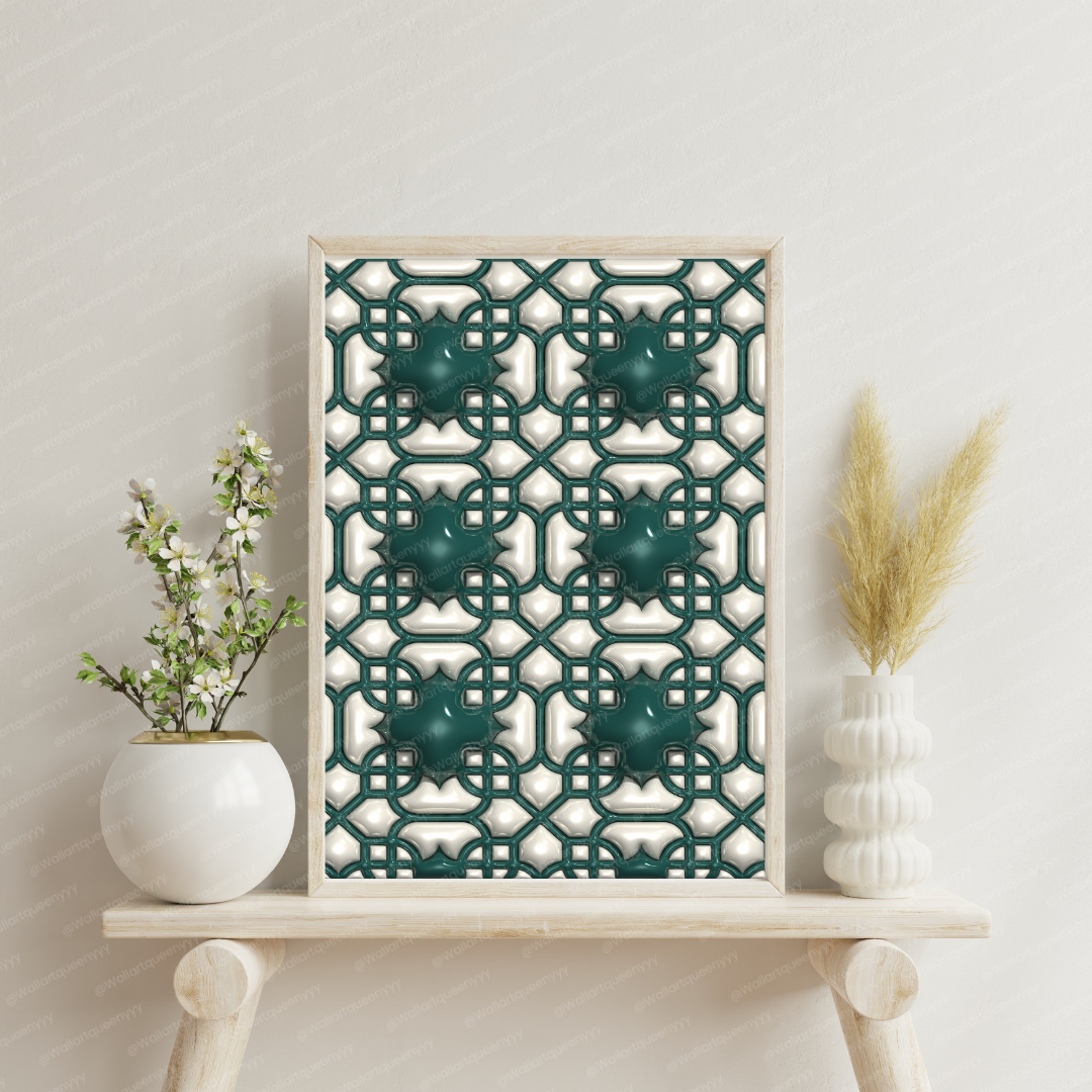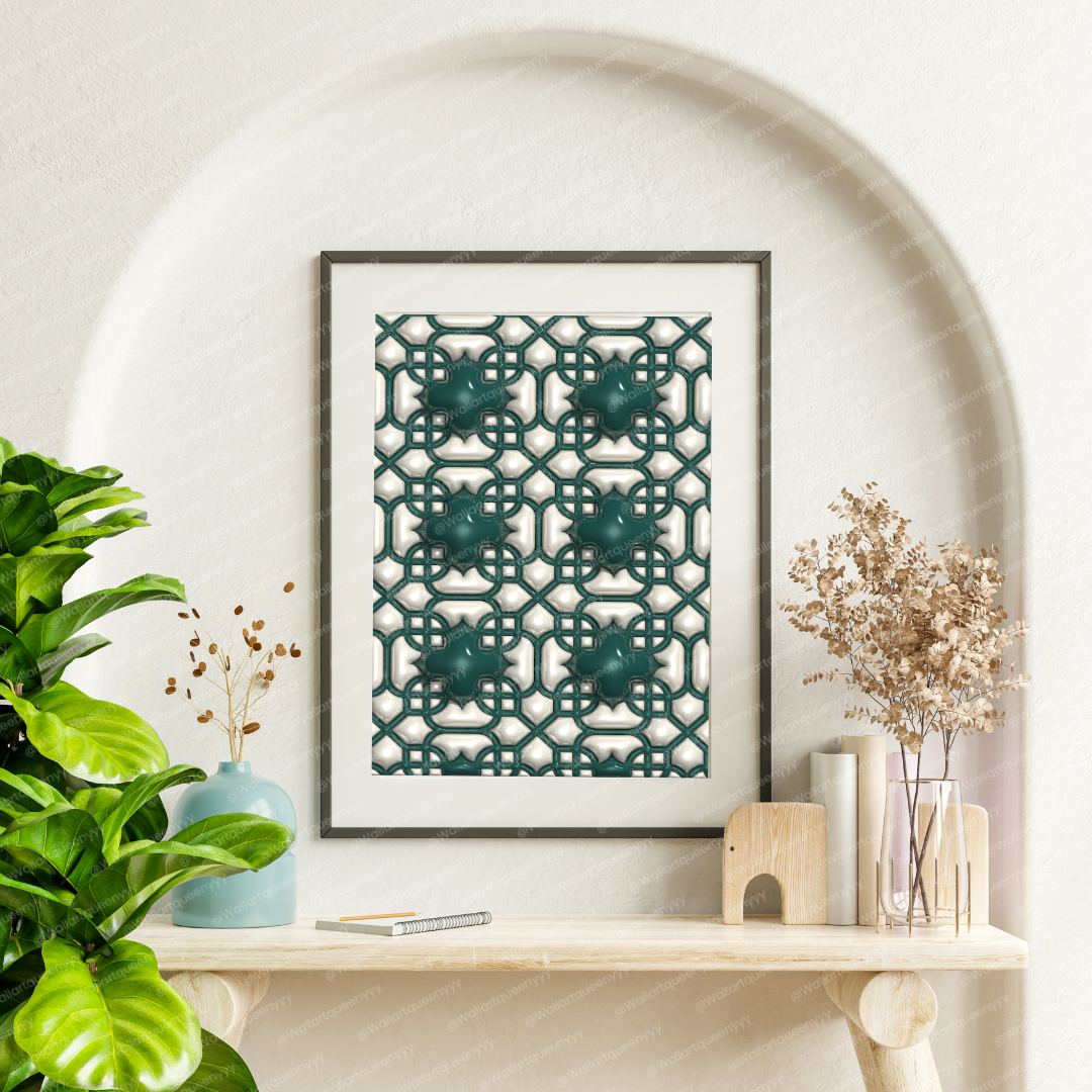 Islamic Interlace Geometry wall art is an elegant printable artwork inspired by the interwoven geometric patterns found in traditional Islamic art. Interlace geometry represents connection, unity, and continuity, making this Islamic wall art a refined decorative piece for Muslim homes, prayer spaces, and spiritual interiors.