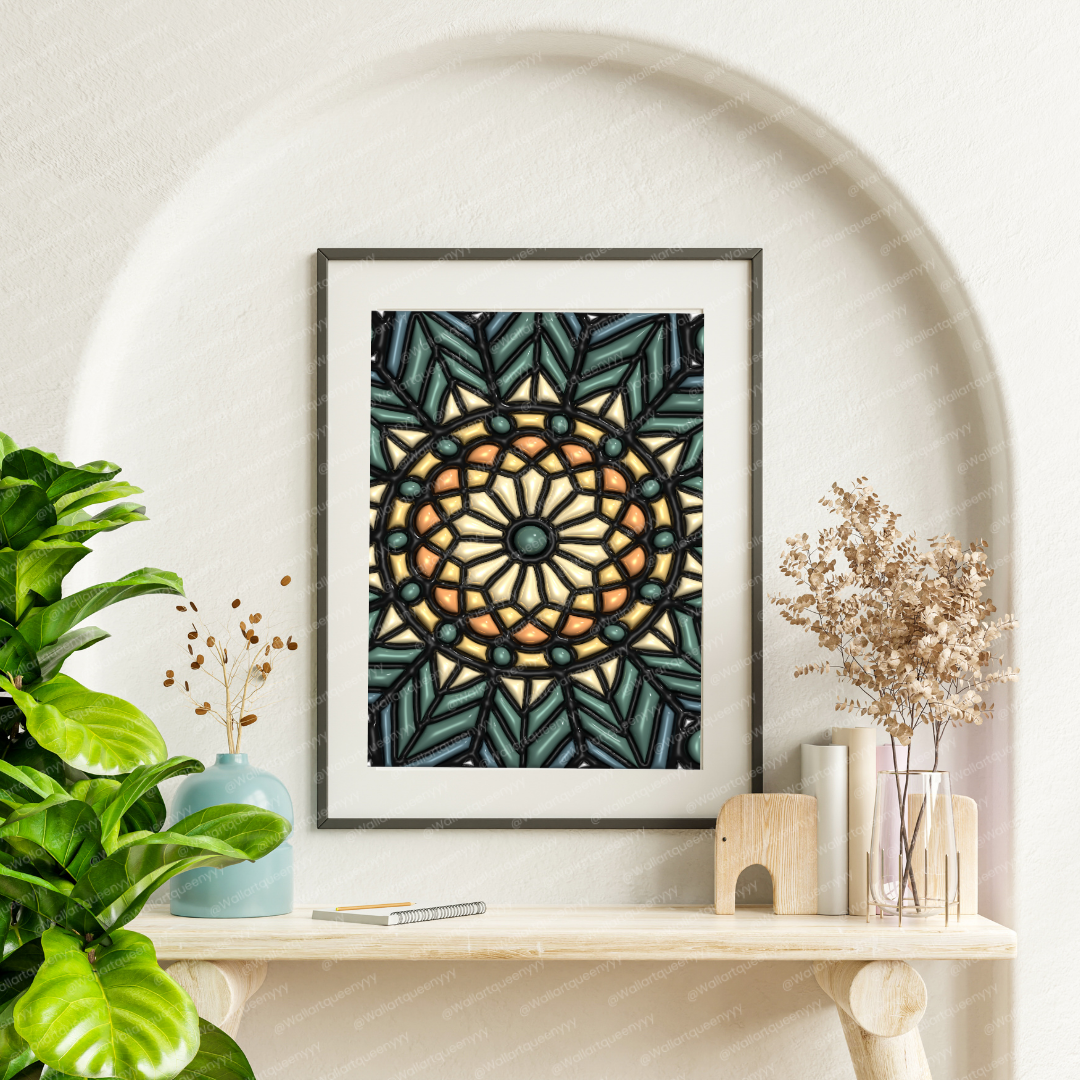 Islamic Mandala Radiance wall art is an elegant printable artwork inspired by radiant symmetry and spiritual balance found in mandala-style Islamic geometry. This Islamic wall art expresses light, harmony, and order through carefully structured circular patterns, making it a refined decorative piece for Muslim homes, prayer spaces, and spiritual interiors.