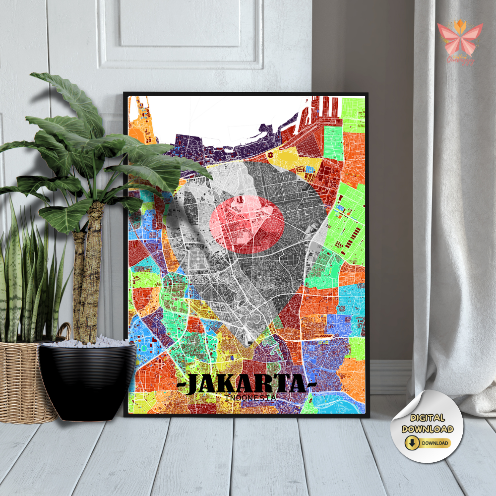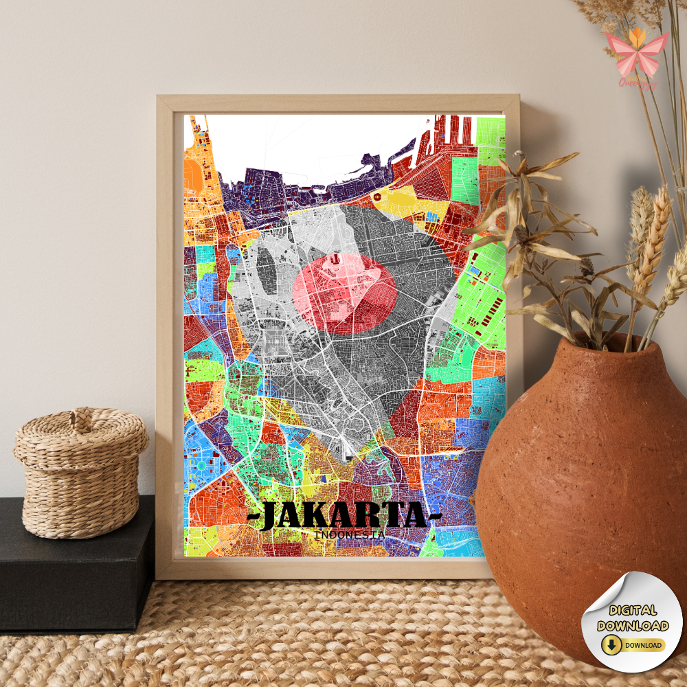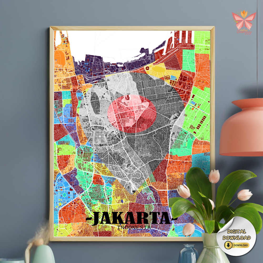 This Jakarta Location Map Wall Art turns a specific place into a timeless