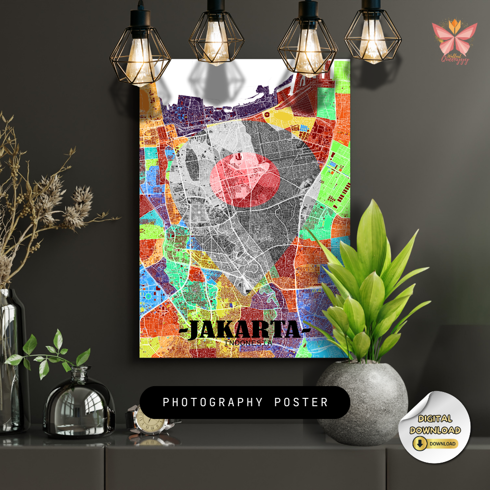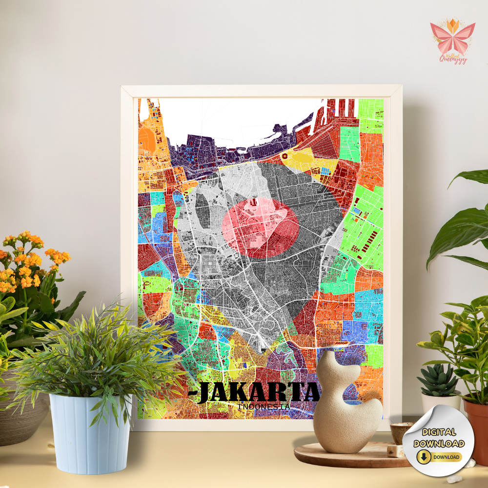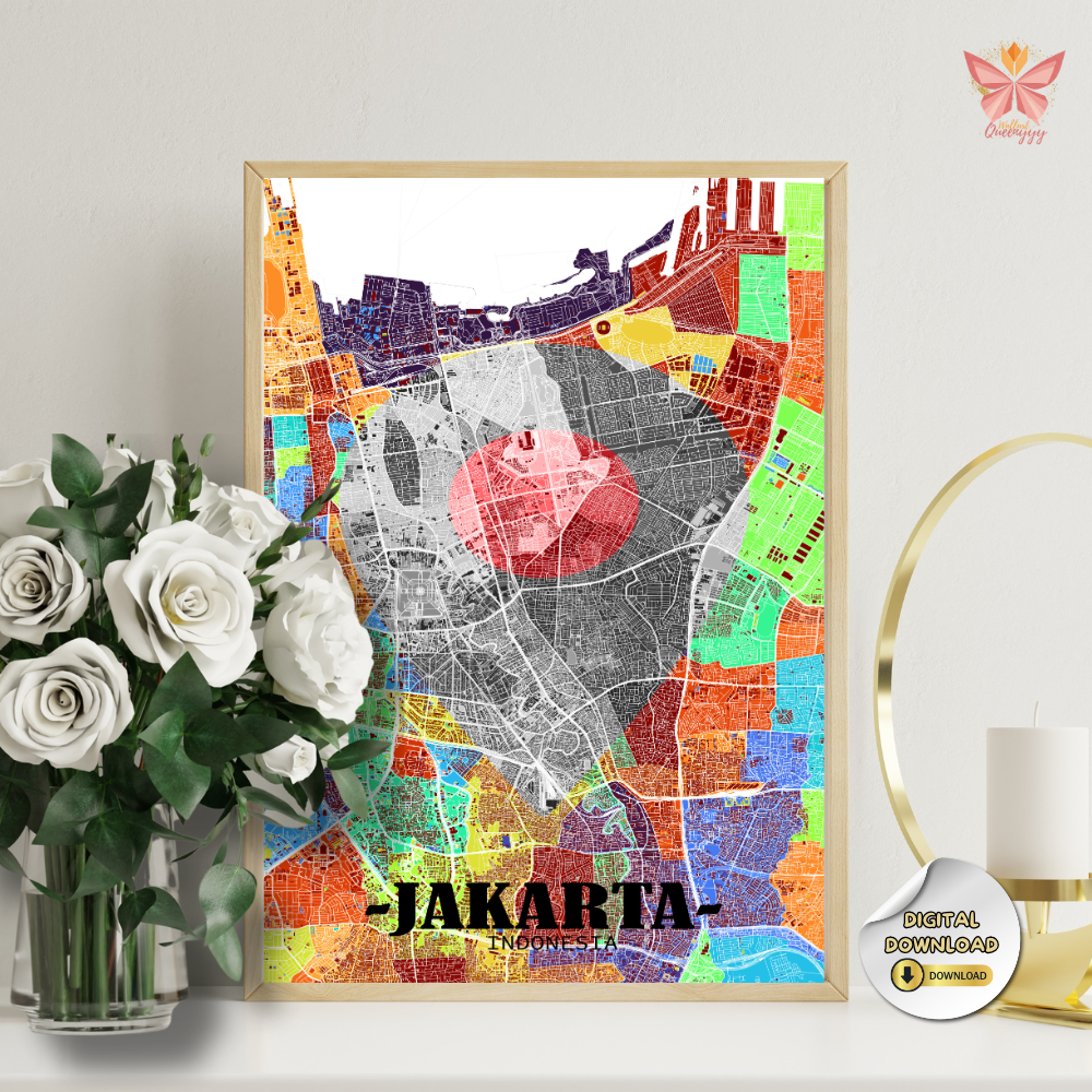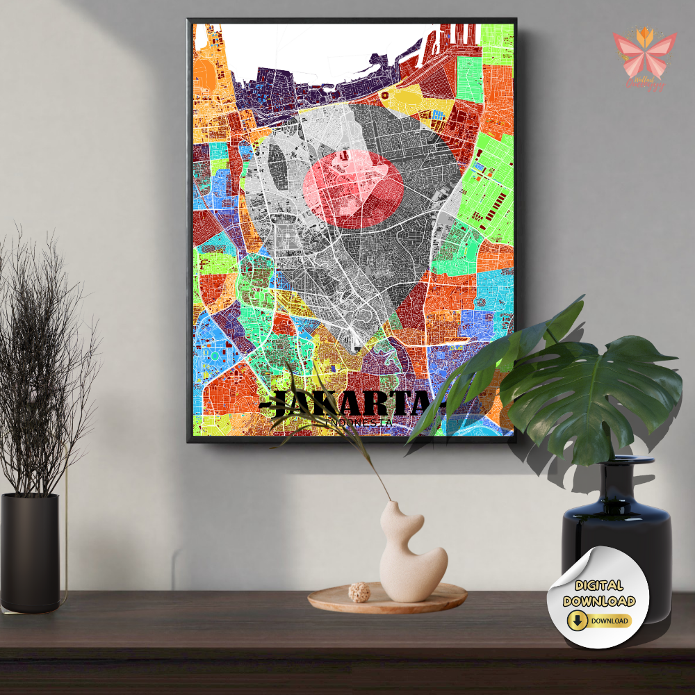 This Jakarta Location Map Wall Art turns a specific place into a timeless