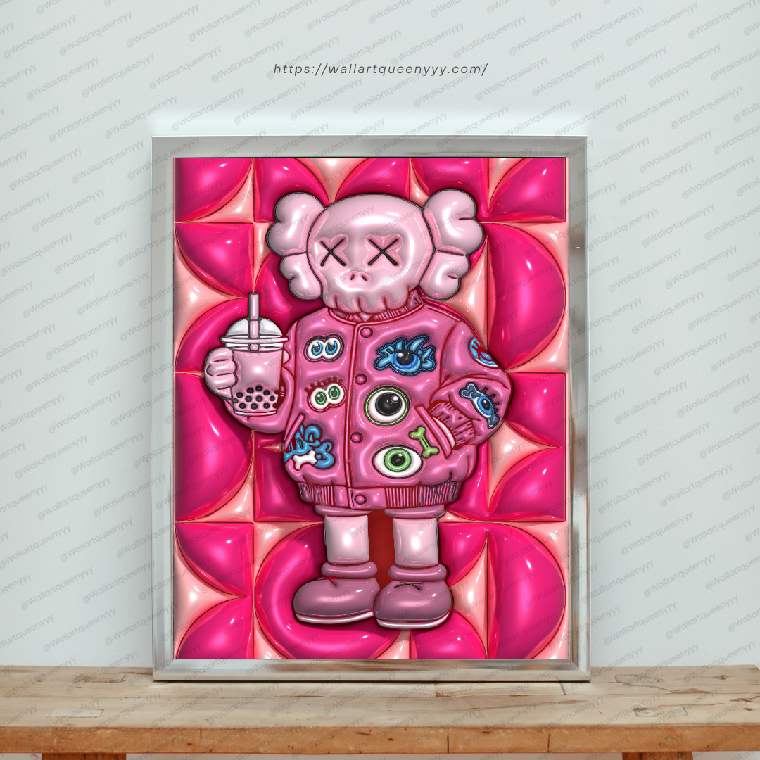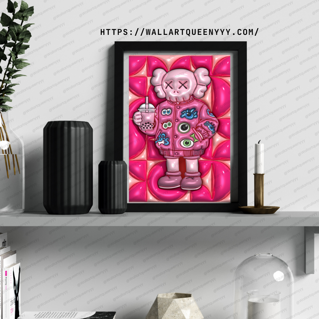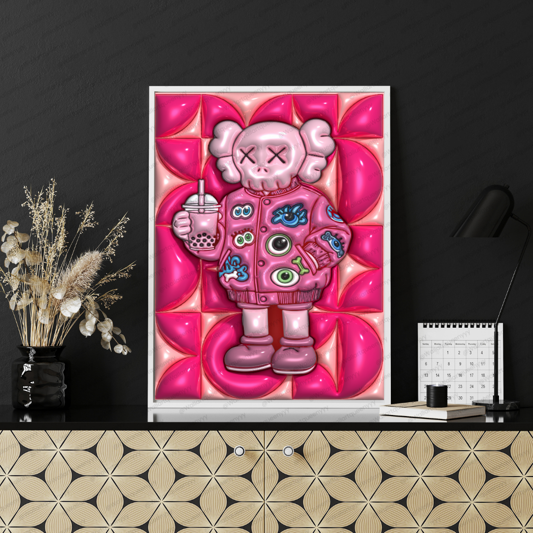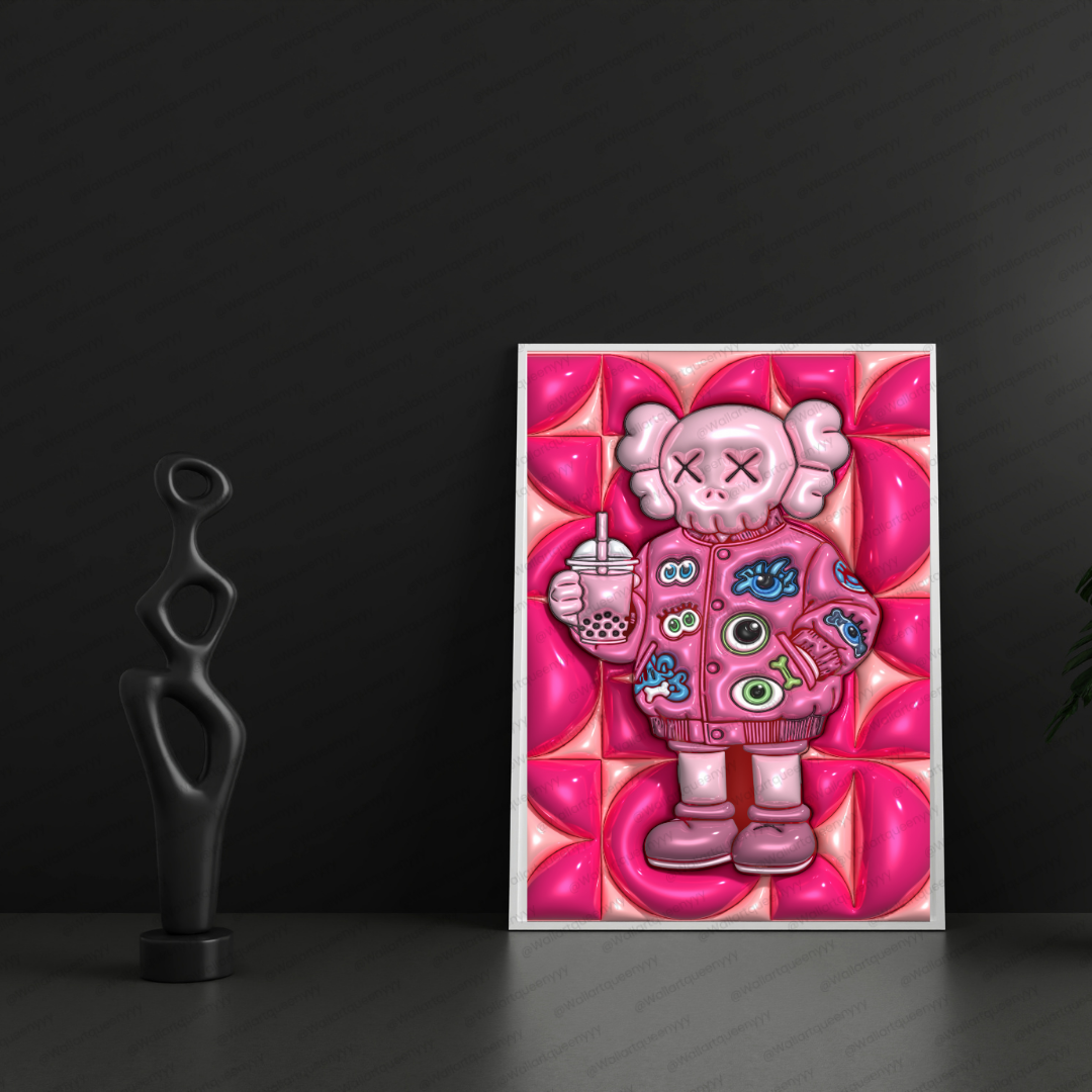 Modern Street pop art blends bold colors, playful characters, and street-inspired design. This KAWS-inspired wall art reflects that aesthetic through expressive character styling, strong outlines, and a modern pink palette that feels trendy and Instagram-ready.