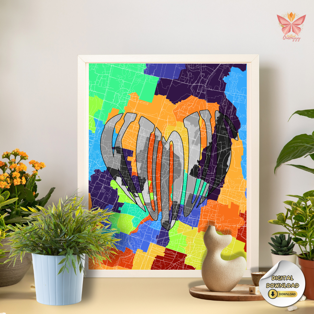 structure with artistic energy, creating a modern and meaningful wall statement.