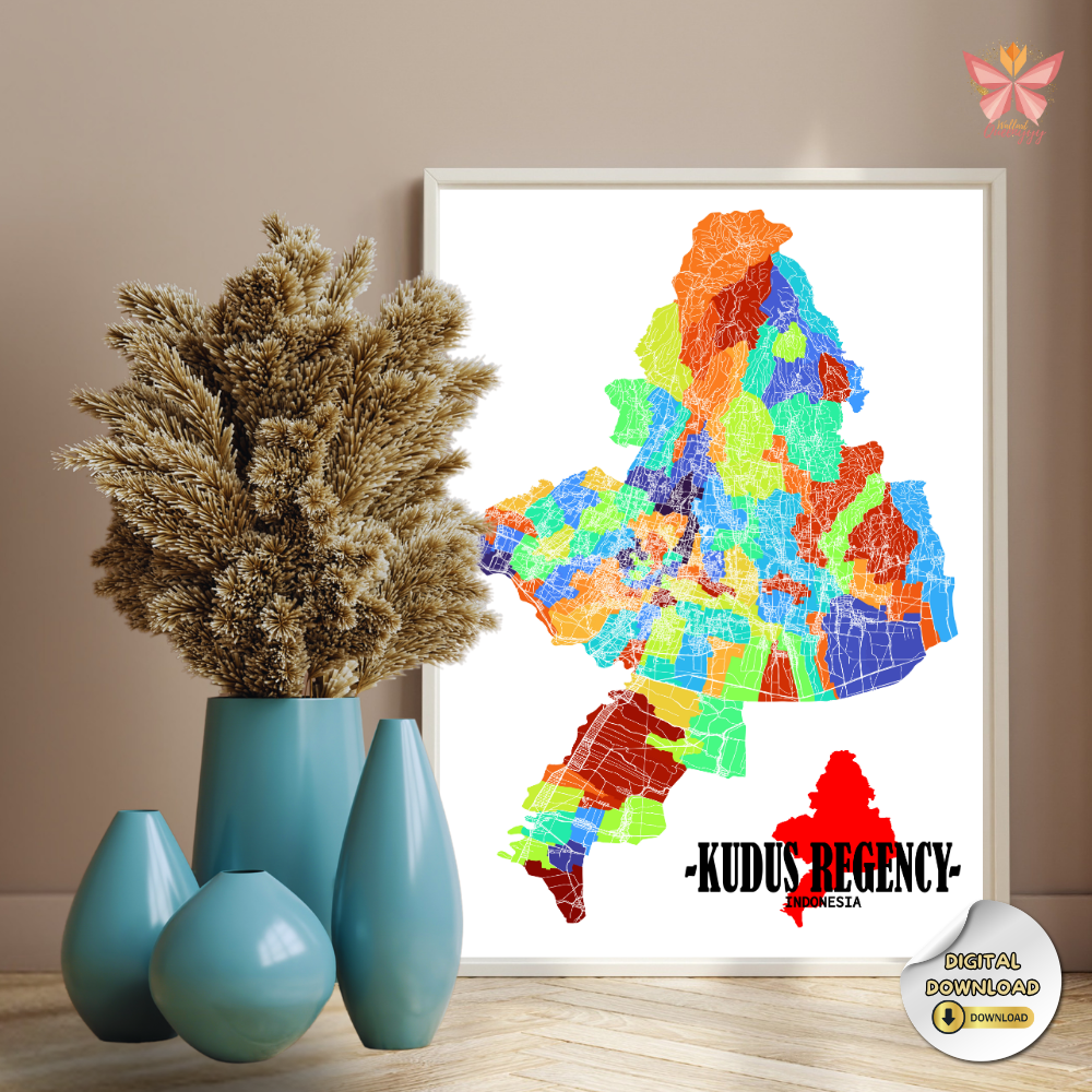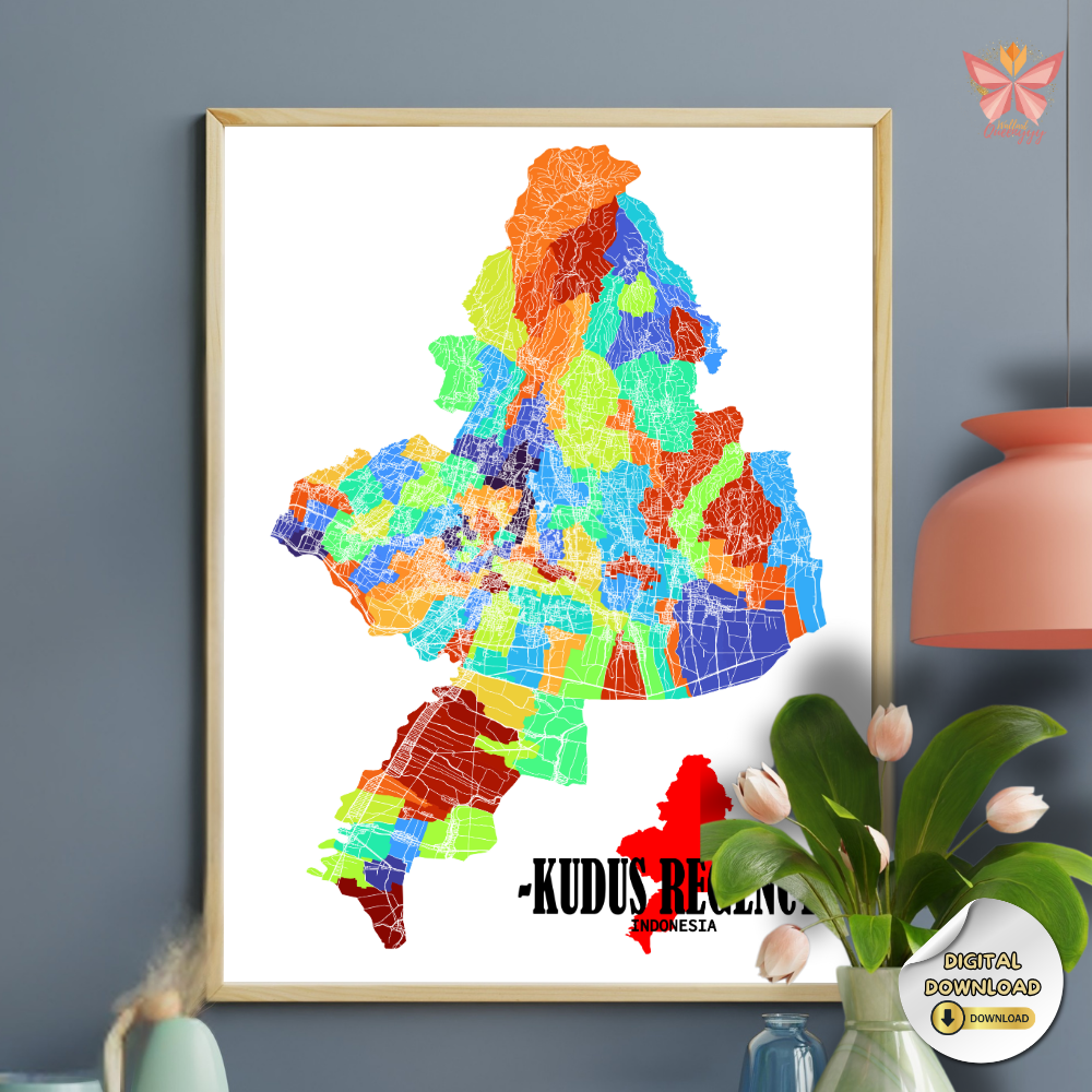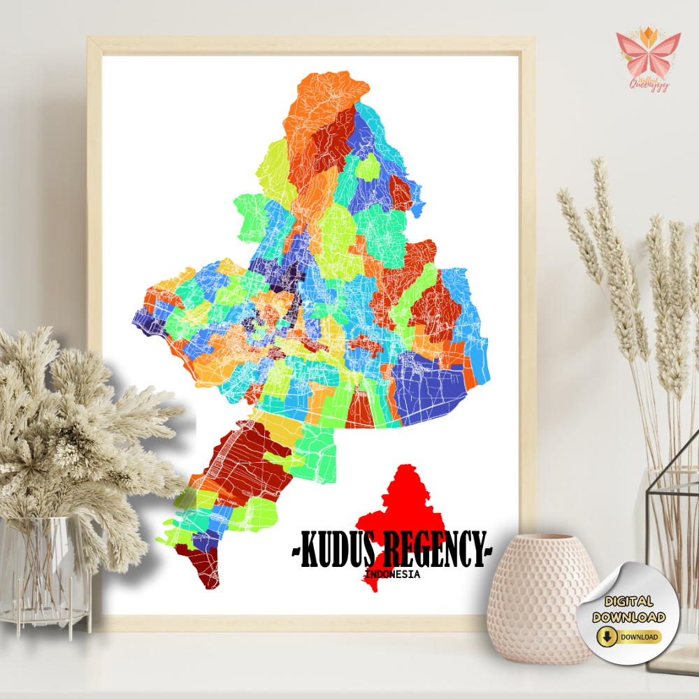 Kudus Mosaic Map – Vibrant District Color Artwork