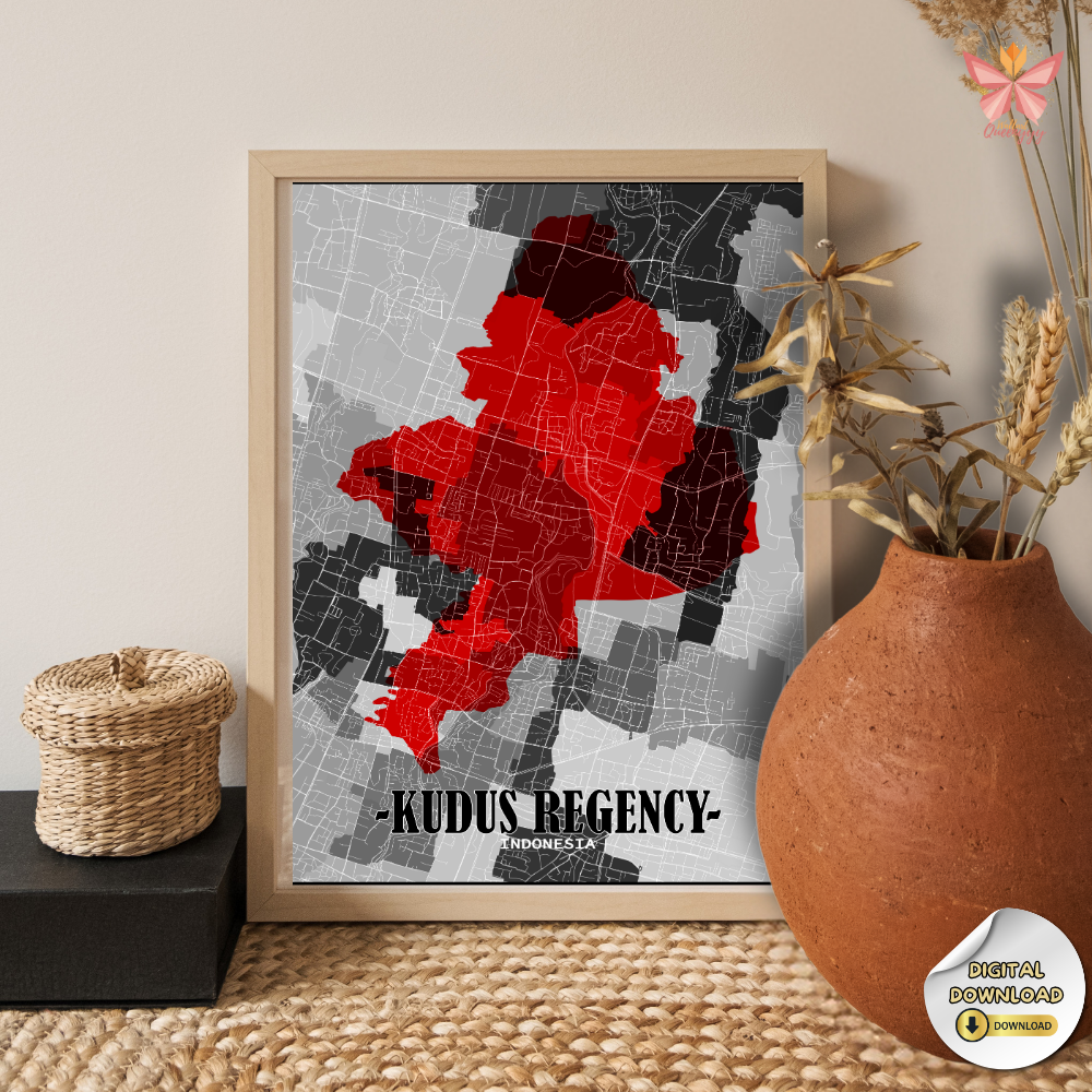 Kudus Regency Signature Map – Bold Red Territory Print