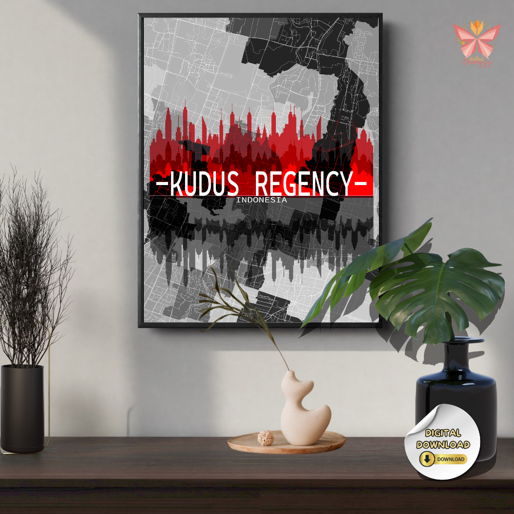 The skyline silhouette transforms Kudus into a striking wall statement,