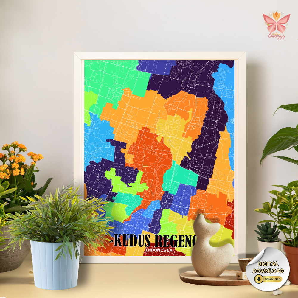 Kudus Urban Palette – Vibrant District Map Print