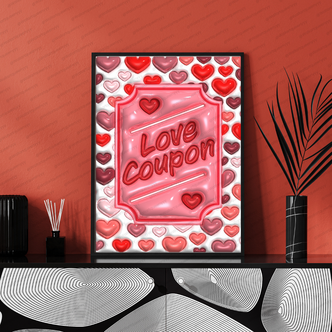 Love Coupon wall art is delivered as a high-resolution 300 DPI JPEG digital file, ensuring crisp typography, smooth gradients, and professional-quality prints at all supported sizes.
