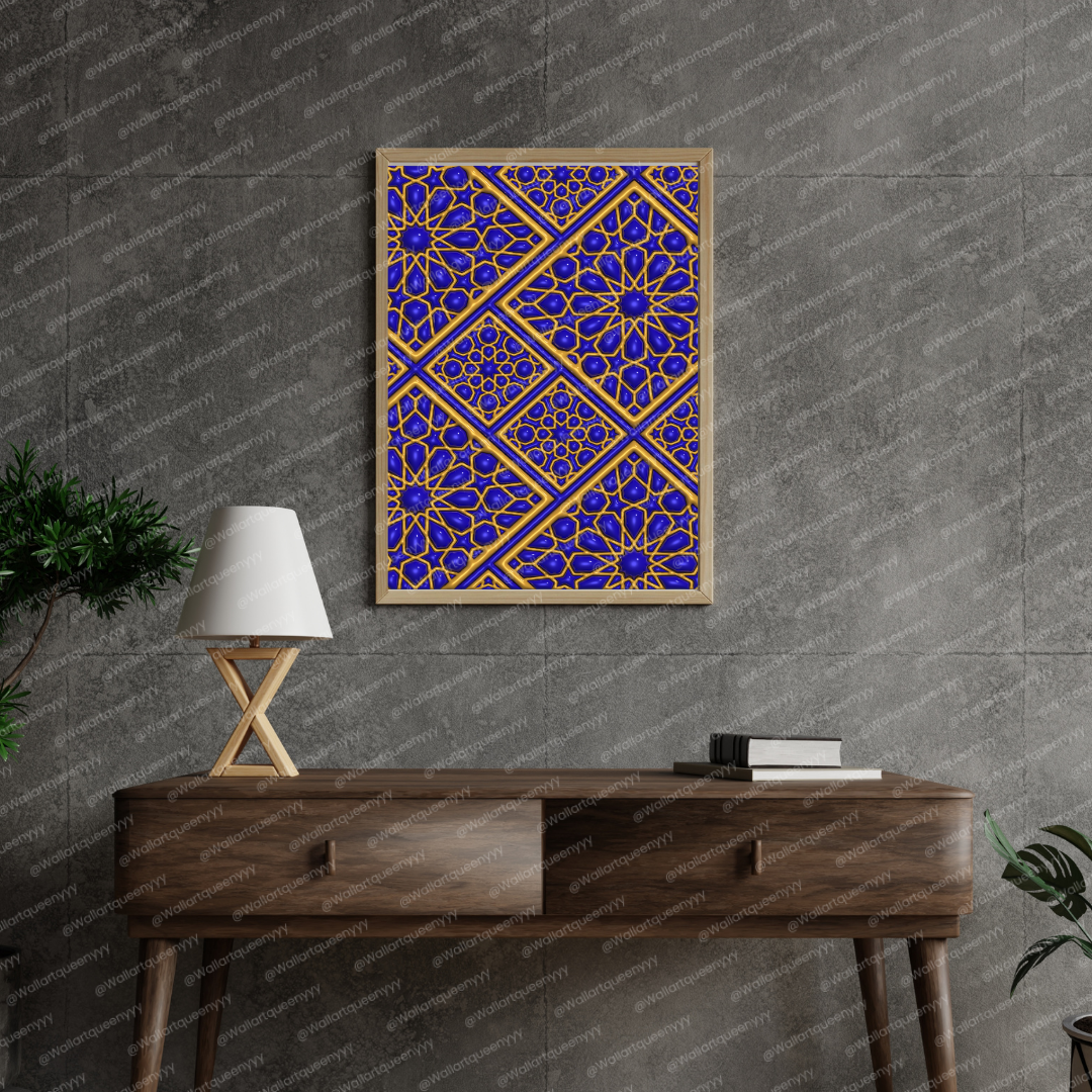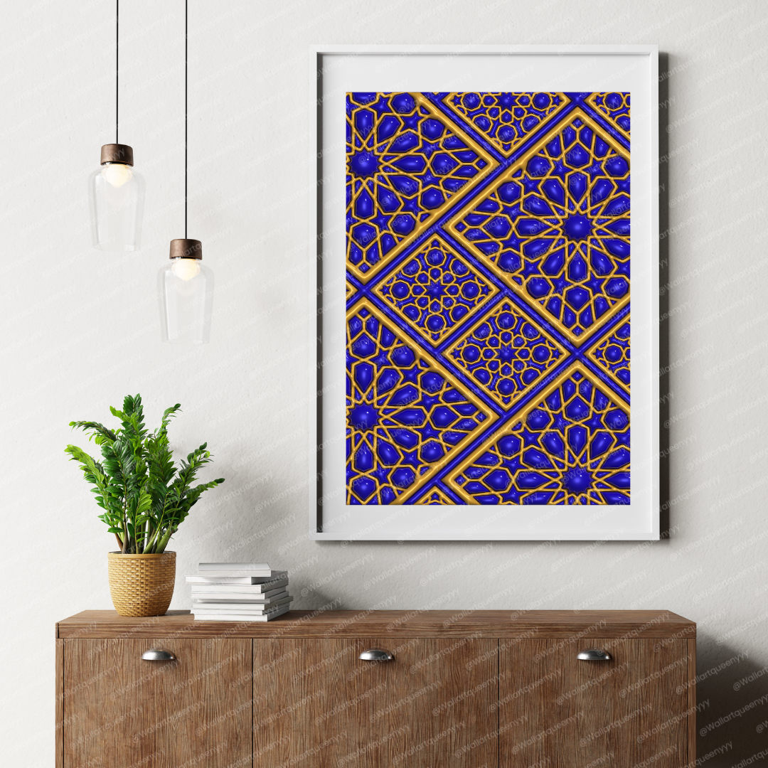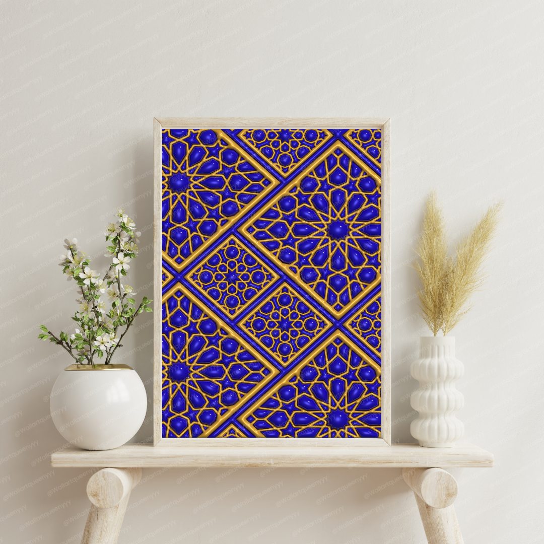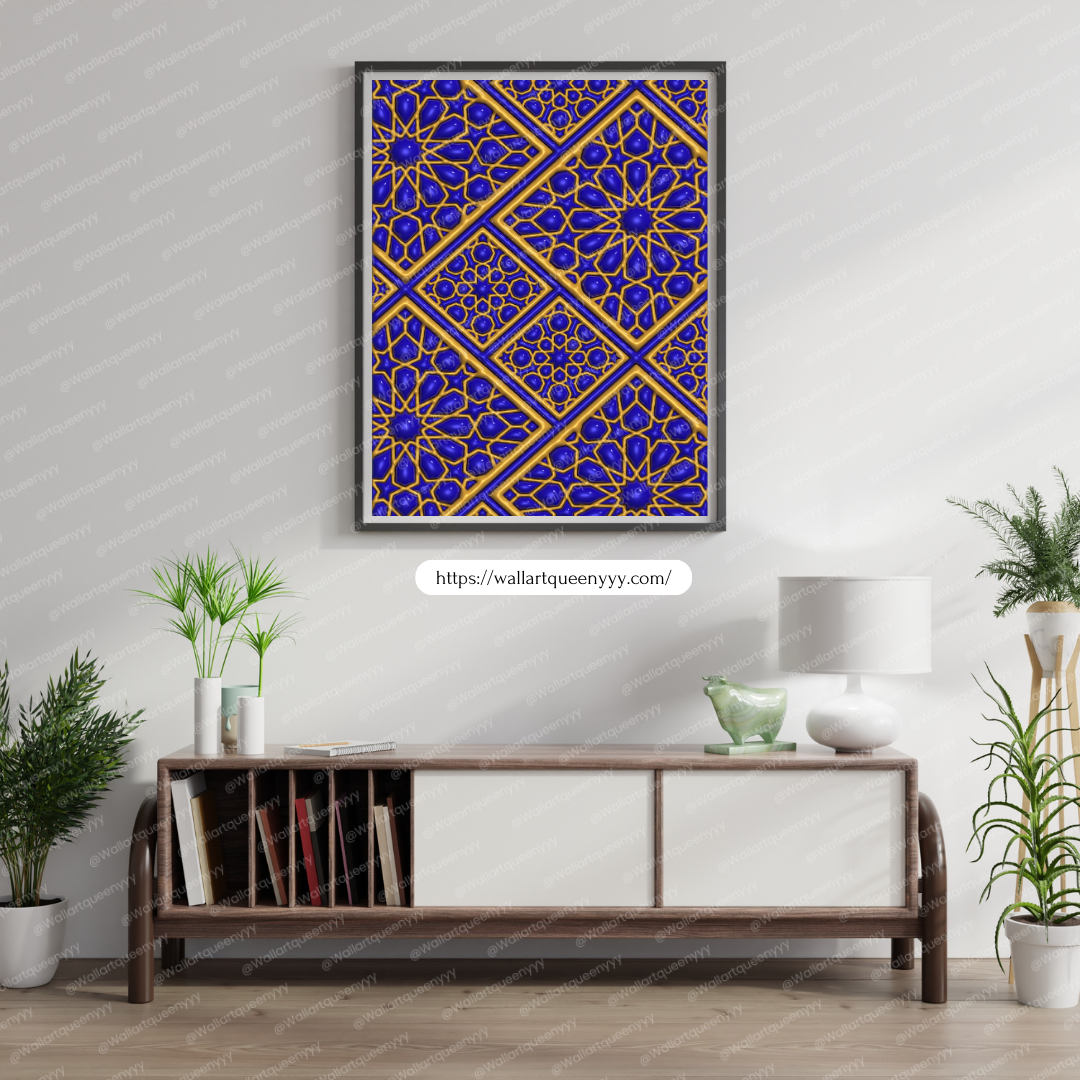 Royal Islamic Diamond Geometry wall art is an elegant printable artwork inspired by the precision, symmetry, and refined beauty of diamond-based Islamic geometric patterns. This Islamic wall art reflects balance, order, and sophistication, making it a luxurious decorative piece for Muslim homes, prayer spaces, and refined Islamic interiors.