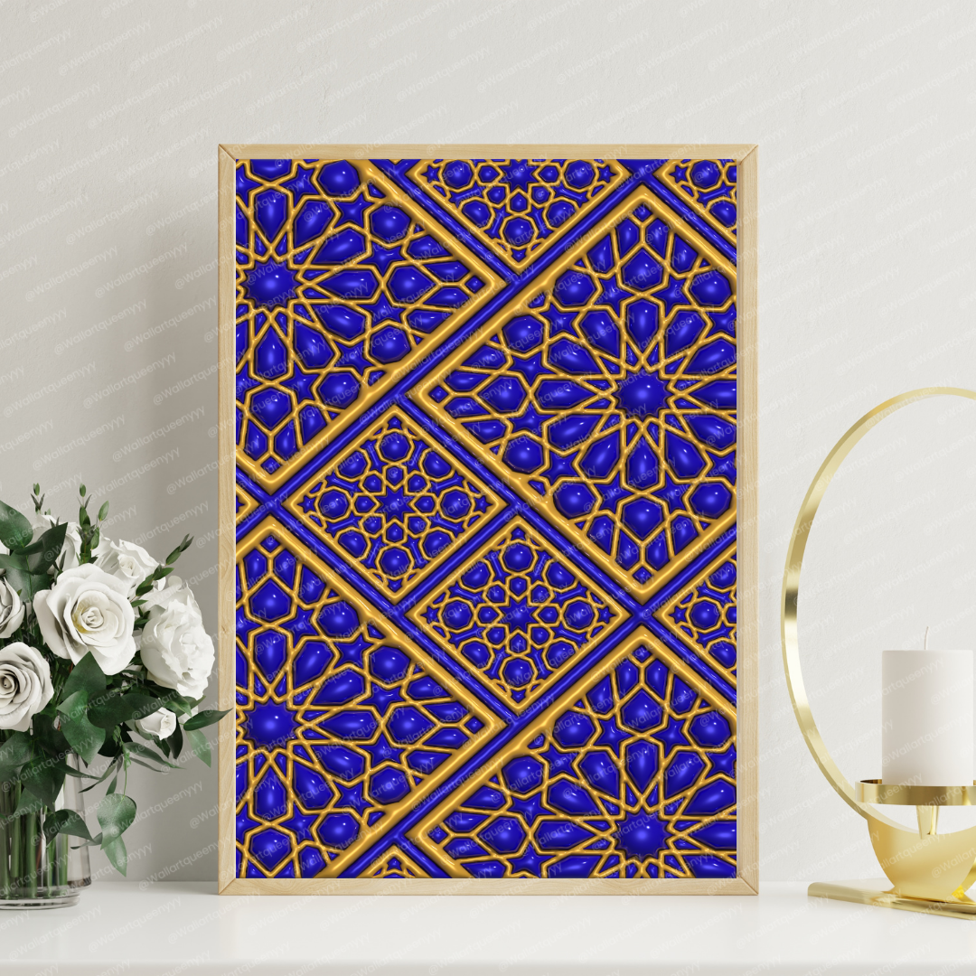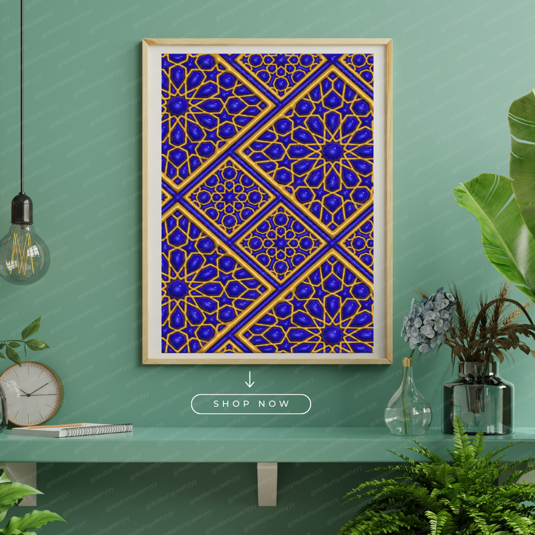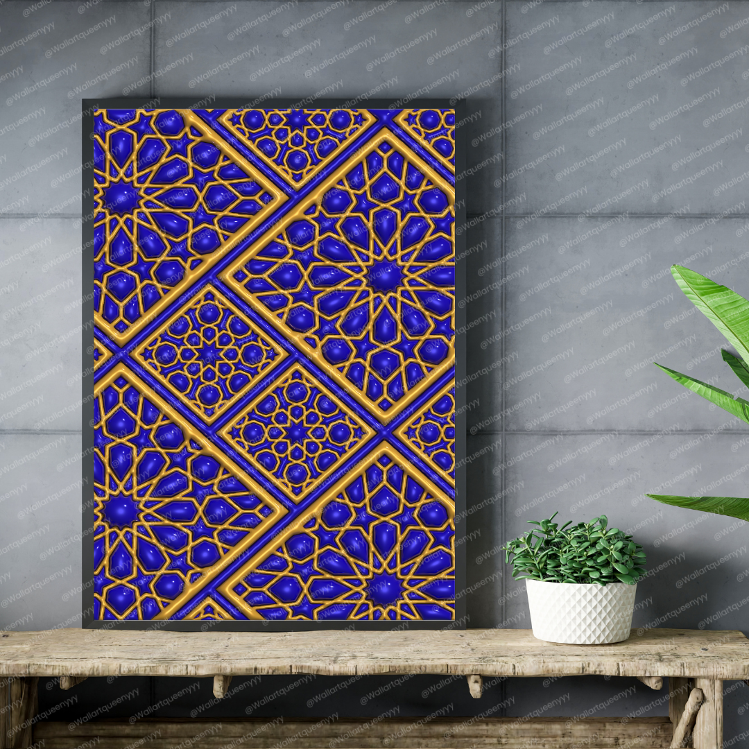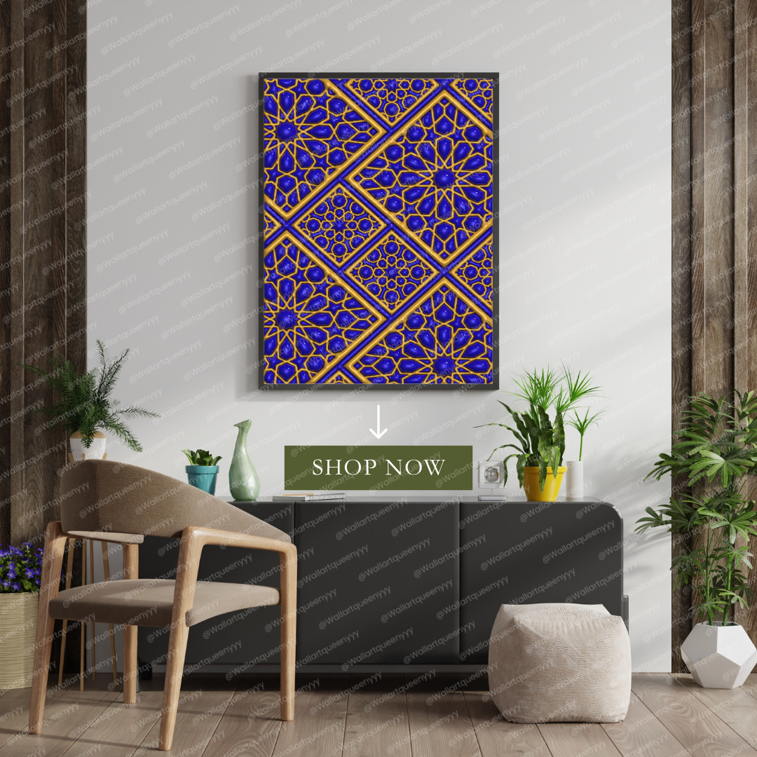 Royal Islamic Diamond Geometry wall art is an elegant printable artwork inspired by the precision, symmetry, and refined beauty of diamond-based Islamic geometric patterns. This Islamic wall art reflects balance, order, and sophistication, making it a luxurious decorative piece for Muslim homes, prayer spaces, and refined Islamic interiors.