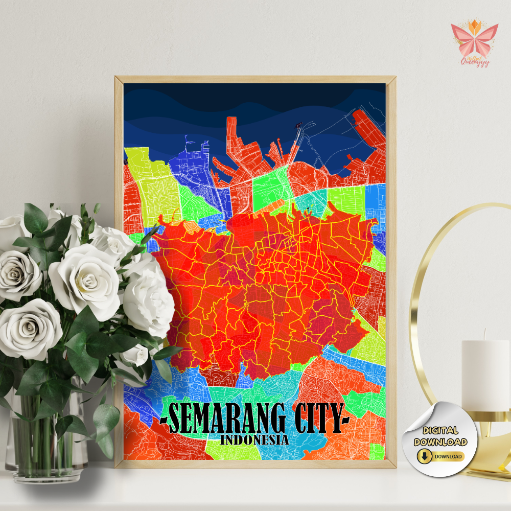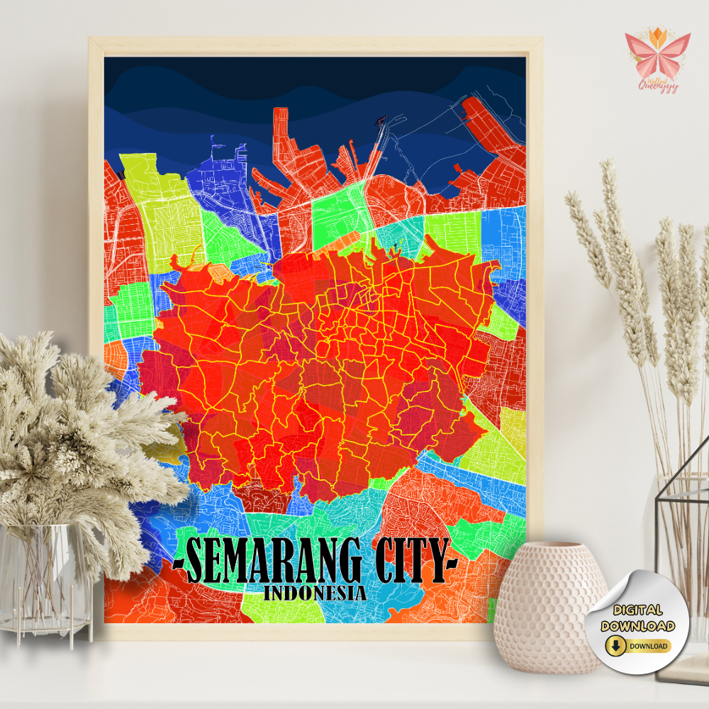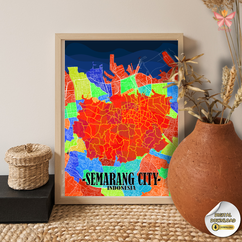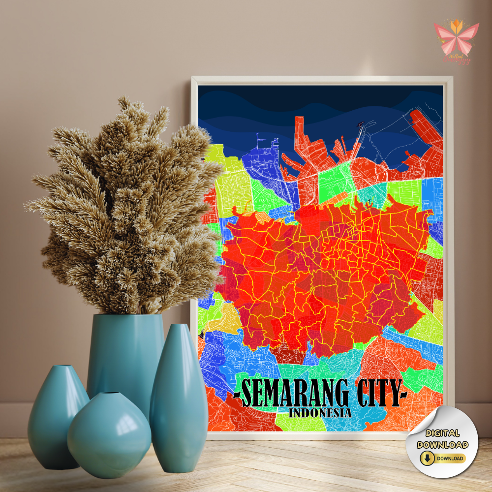 This Semarang District Map Wall Art showcases the city through a