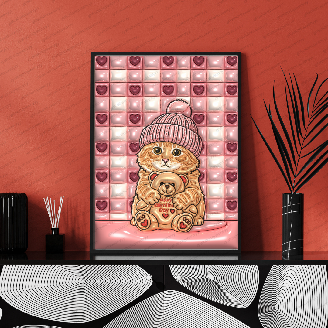 Valentine Kitten Teddy wall art is designed for those who love soft, gentle, and emotionally comforting Valentine decor. It is ideal for spaces that aim to feel warm, calm, and lovingly decorated rather than bold or graphic.