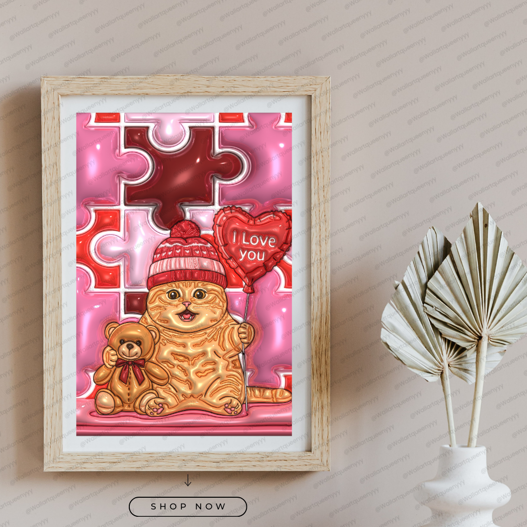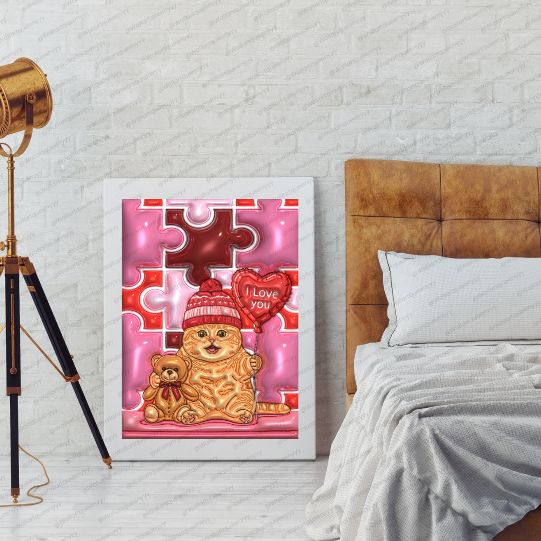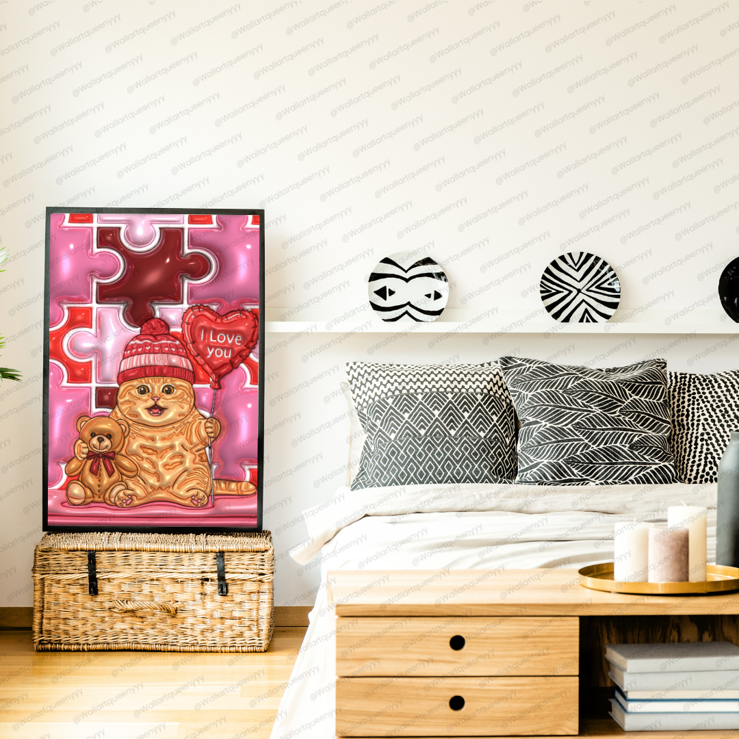 Valentine Puzzle Heart Cat wall art is created for those who want Valentine decor that feels cute, emotional, and symbolic rather than generic. The puzzle heart design adds depth and meaning, making the artwork feel personal and intentional.